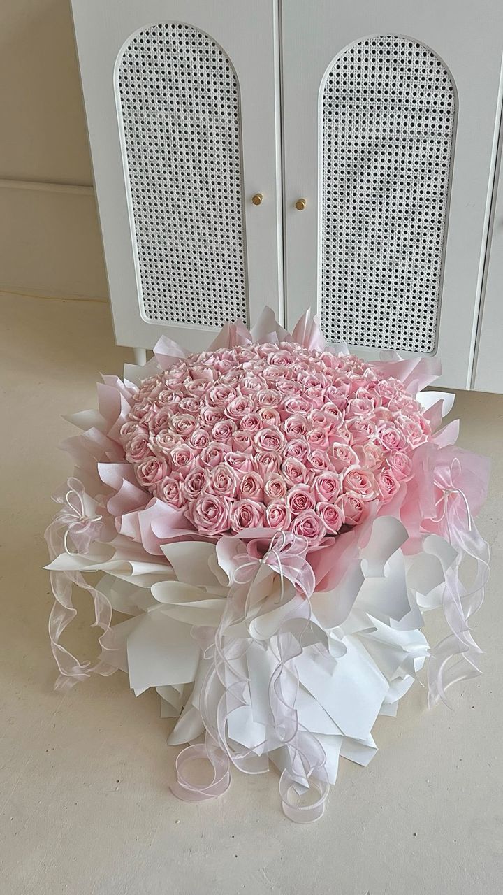 Picture shown: 99x pink roses bouquet
